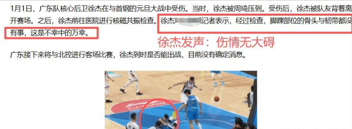徐杰的伤情诚然不严重,此次事件给广东队敲响了警钟。